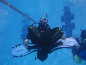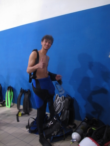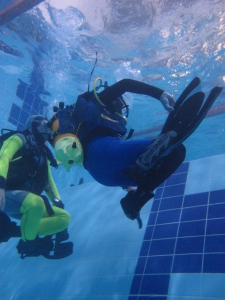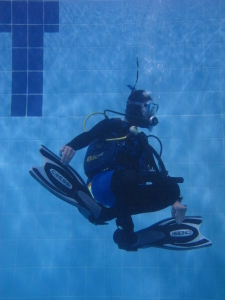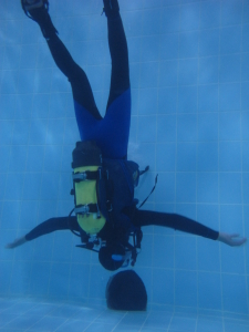 L’assetto neutro a testa in giù guardando le meraviglie nascoste nella mitica “tana” della piscina.