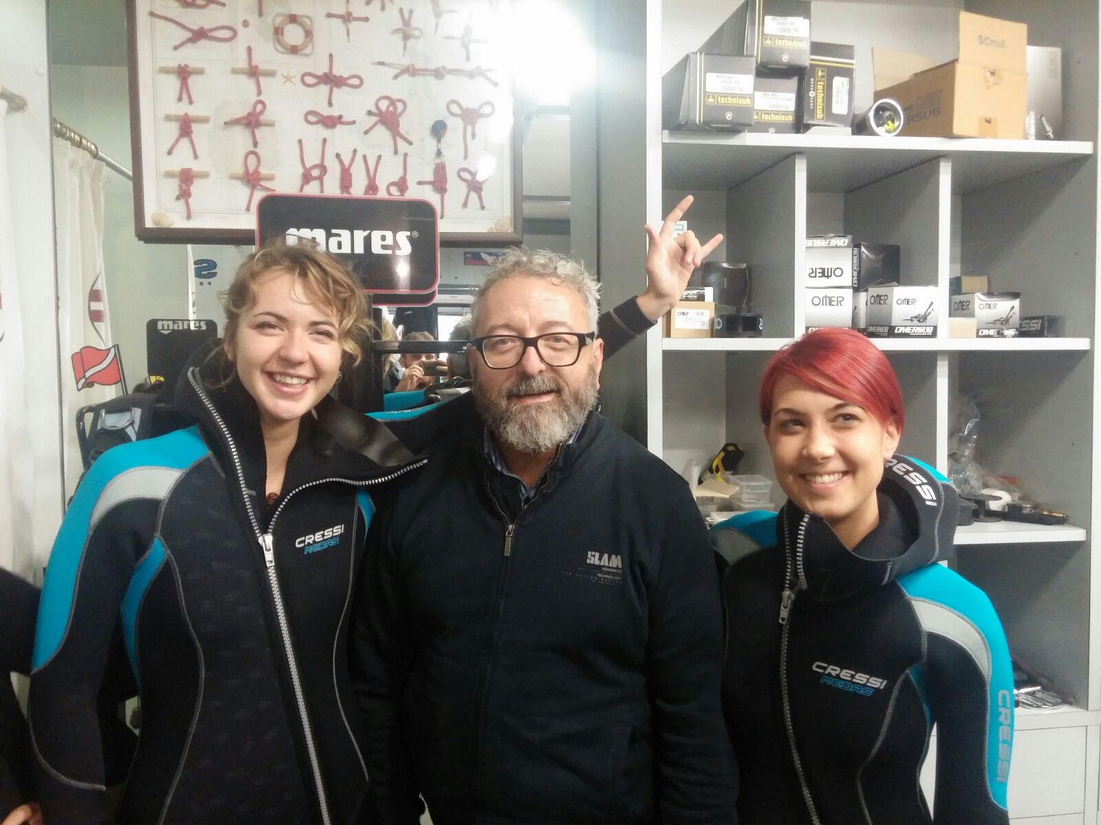 Il Gallo che mostra maschere e snorkel al gruppo 2.