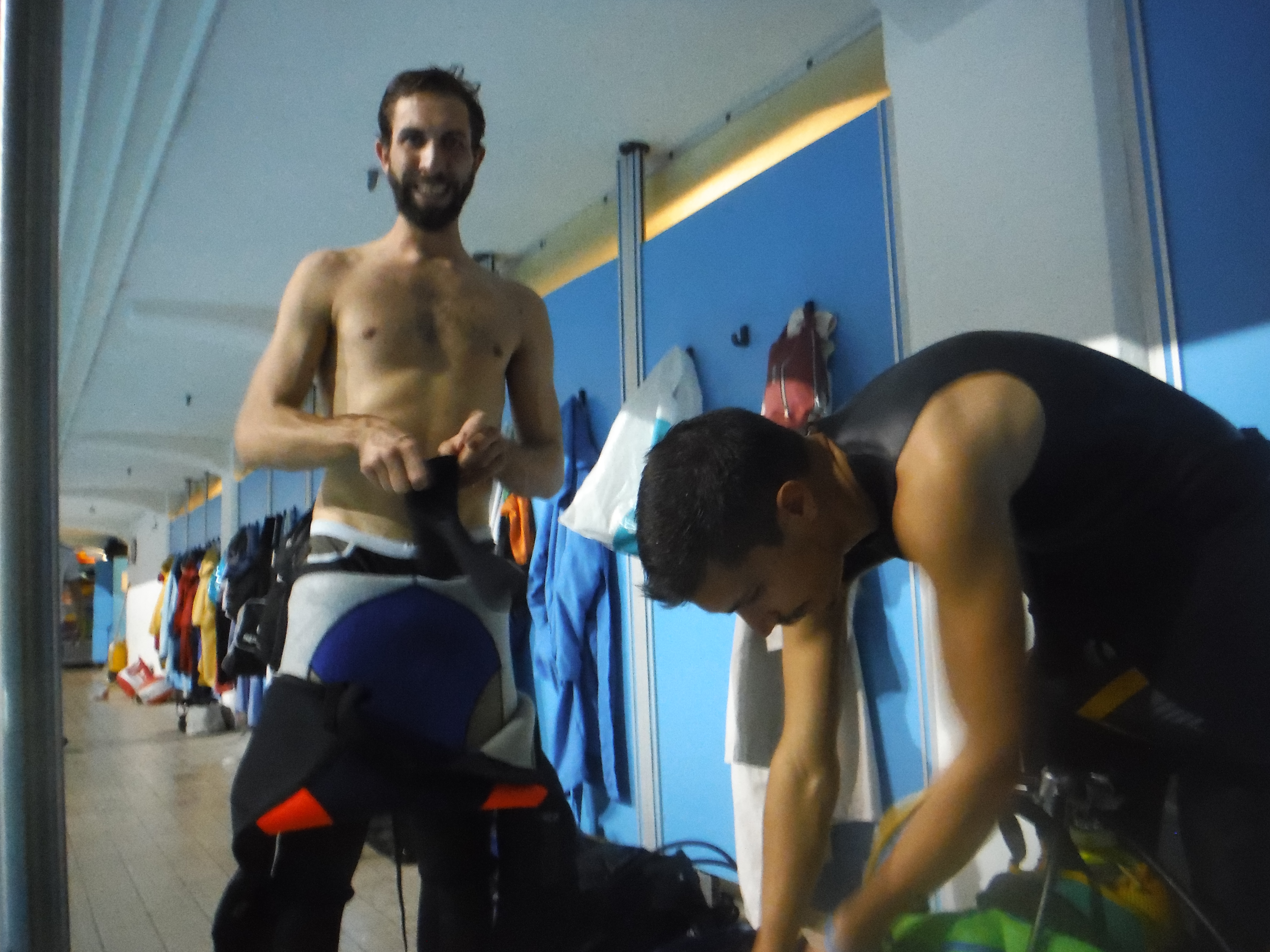 Chi entra in acqua bassa poi si deve vestire in acqua con l’aiuto del compagno.