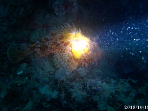 Arriva uno scorfano a farci un salutino.