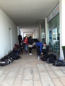 Partenza all’alba con foto di rito: Cate, Francesco, Giada, Fabio, Simone, Francesca, Doriana e Carlo.