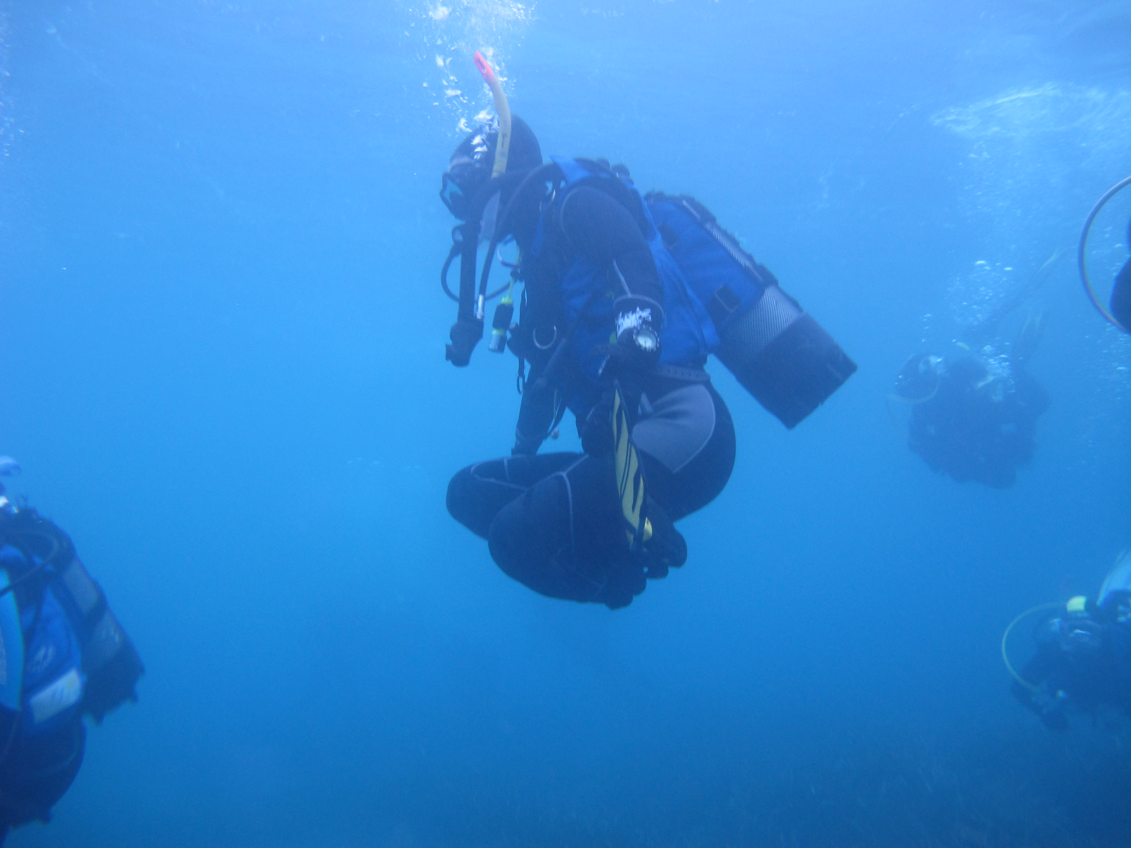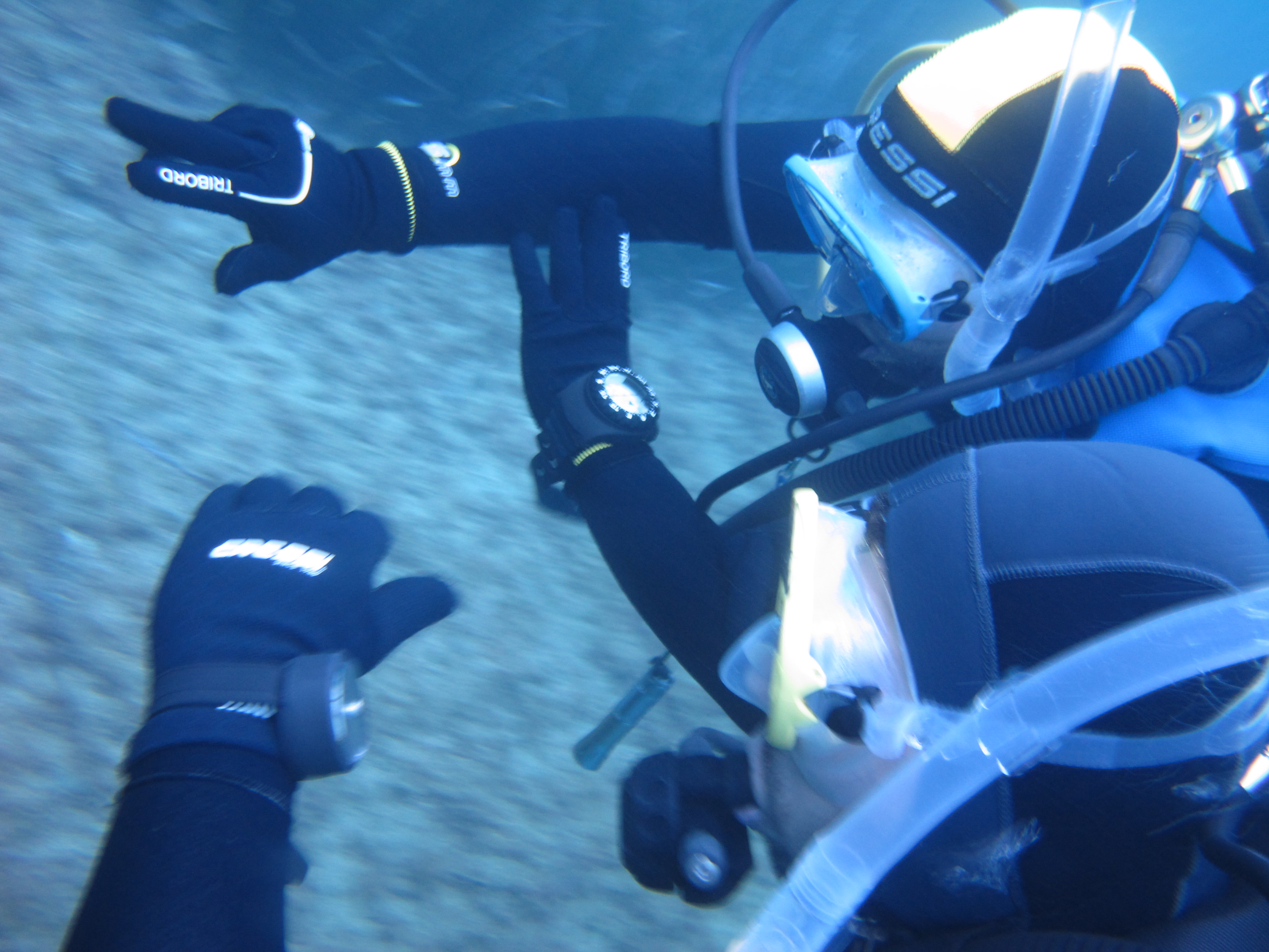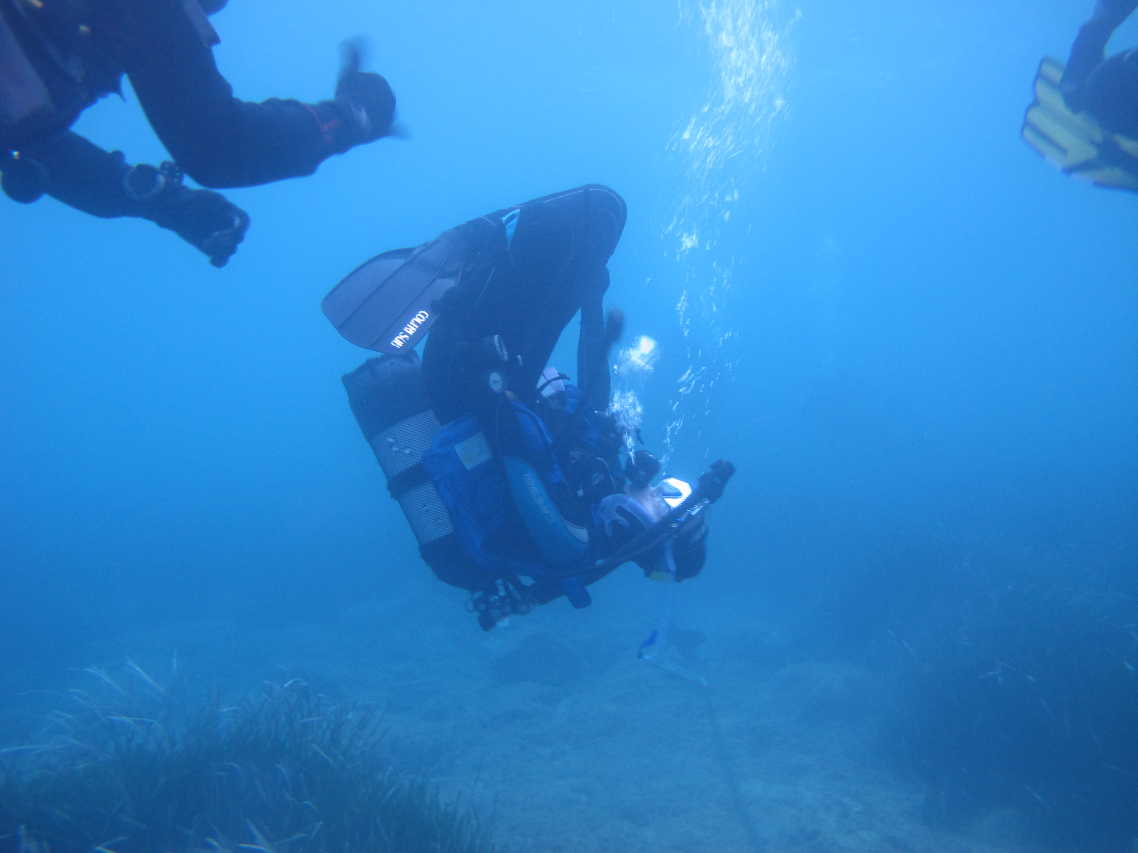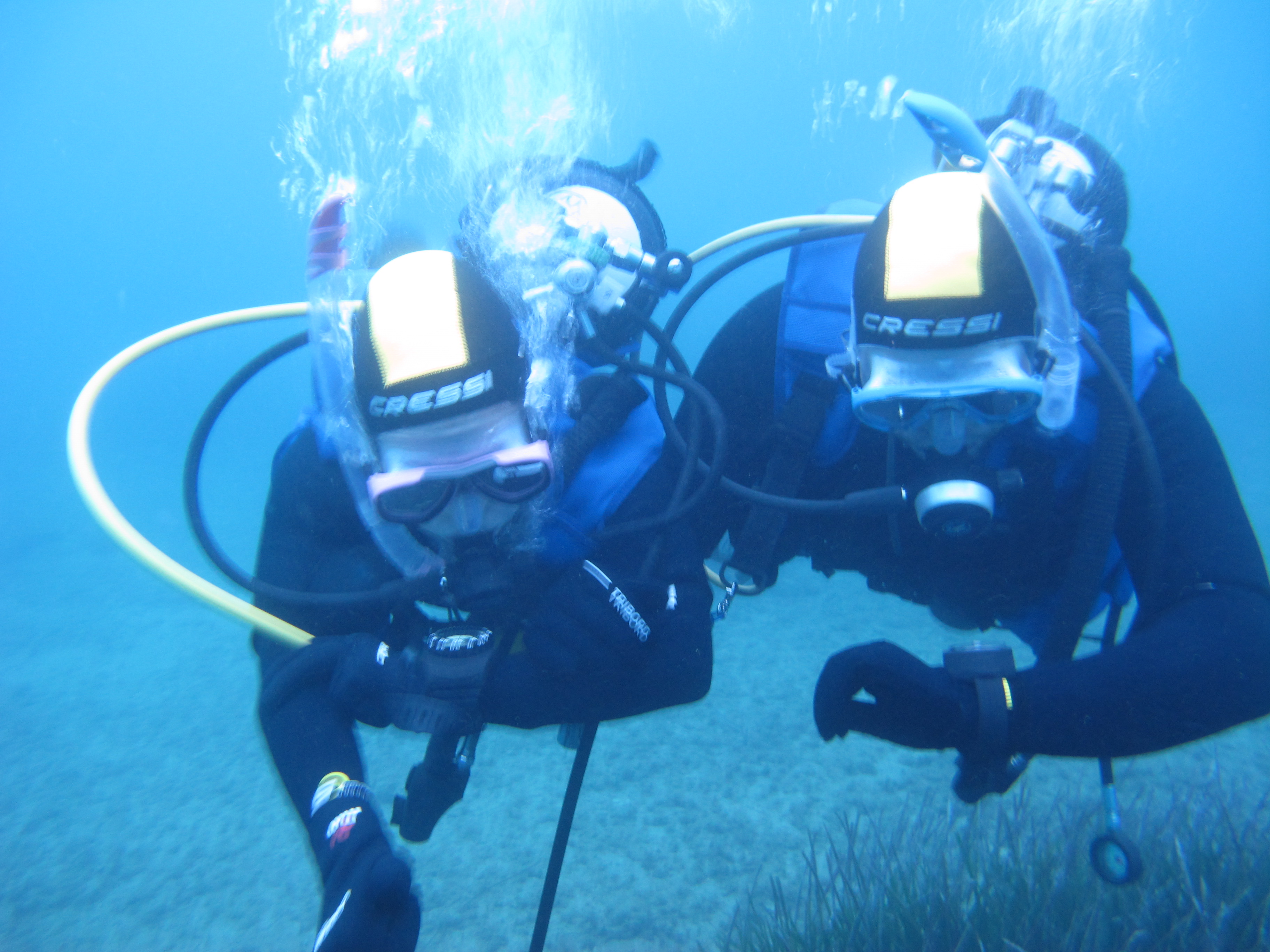 Si comincia con gli esercizi advanced. Prima coppia: Greta segue la bussola mente Carlo controlla la profondità.