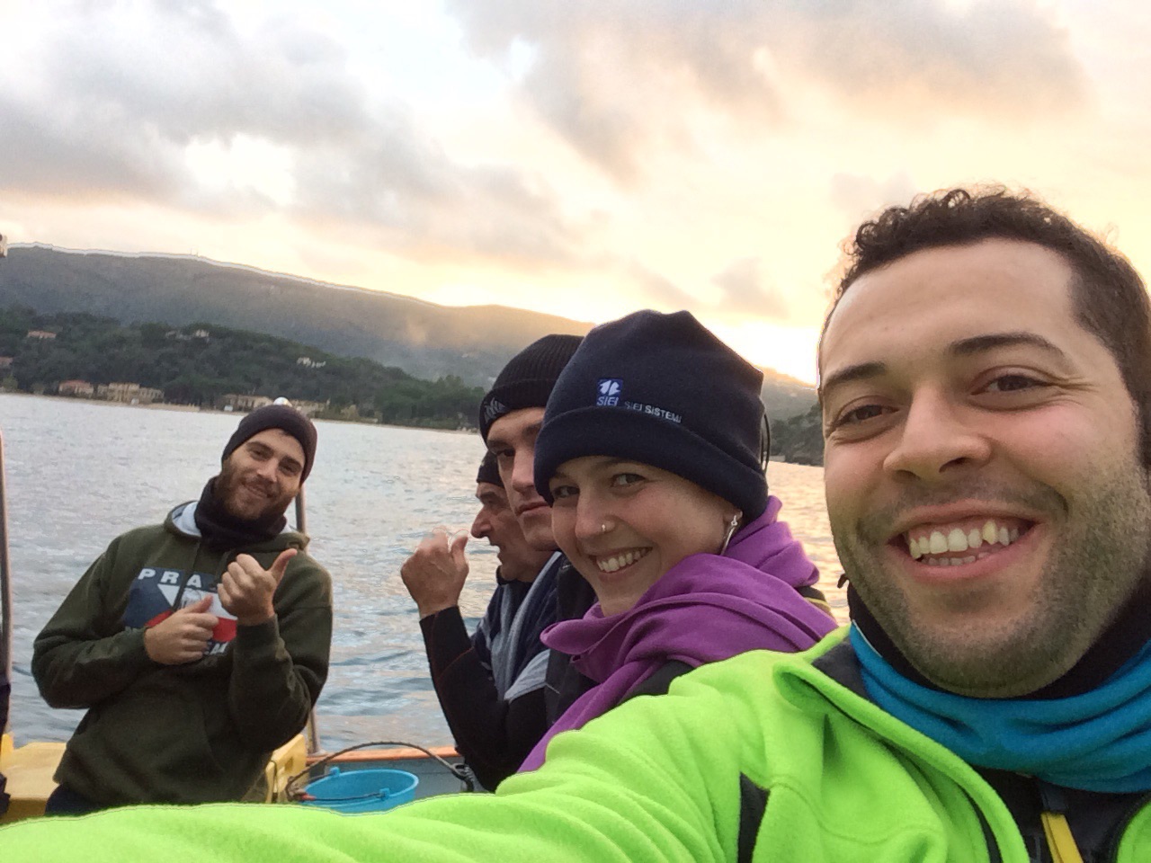 Selfie prima di tornare in porto. Luca, Mariano, Simo, Frà e Carlo.