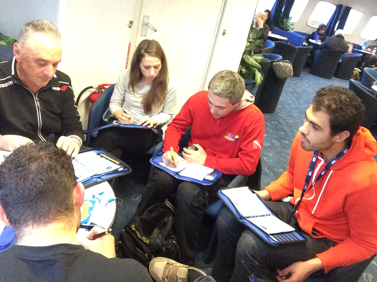 Al ritorno in traghetto si compilano le ultime immersioni sul logbook.