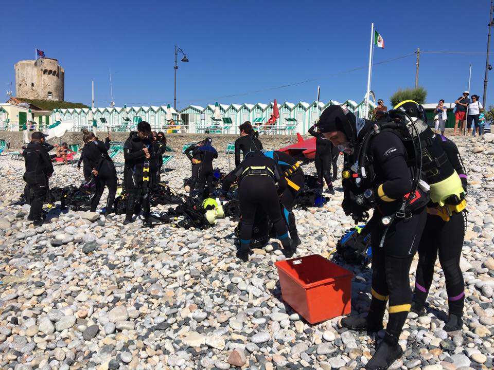 Preparativi pre-immersione dalla spiaggia.