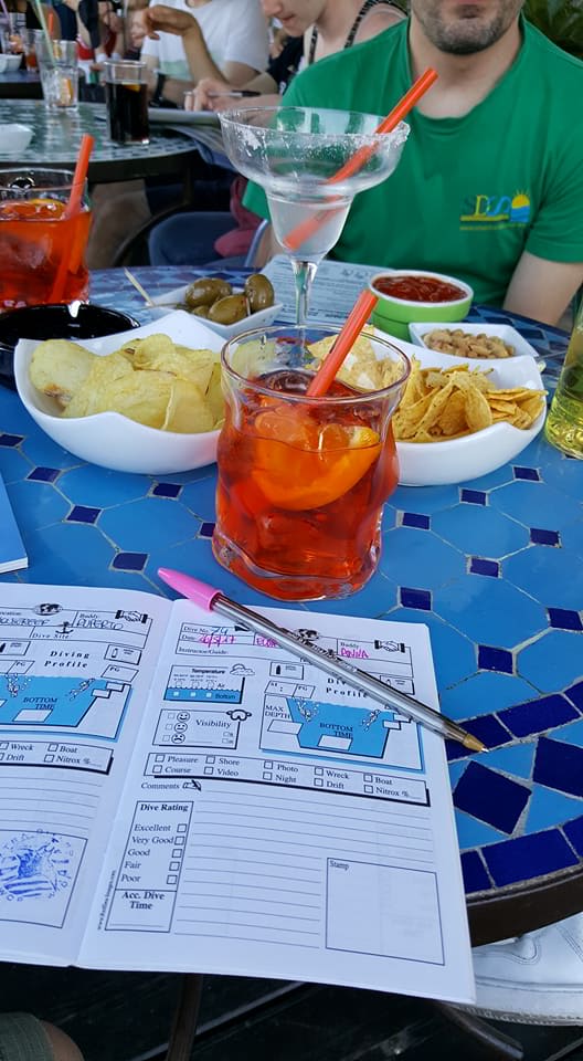 Dopo tanta fatica un meritato spritz mentre si compila il logbook.