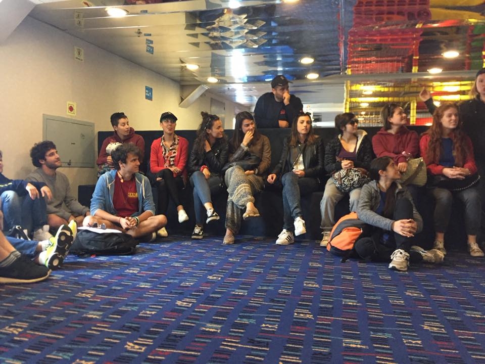 Foto di gruppo in traghetto.