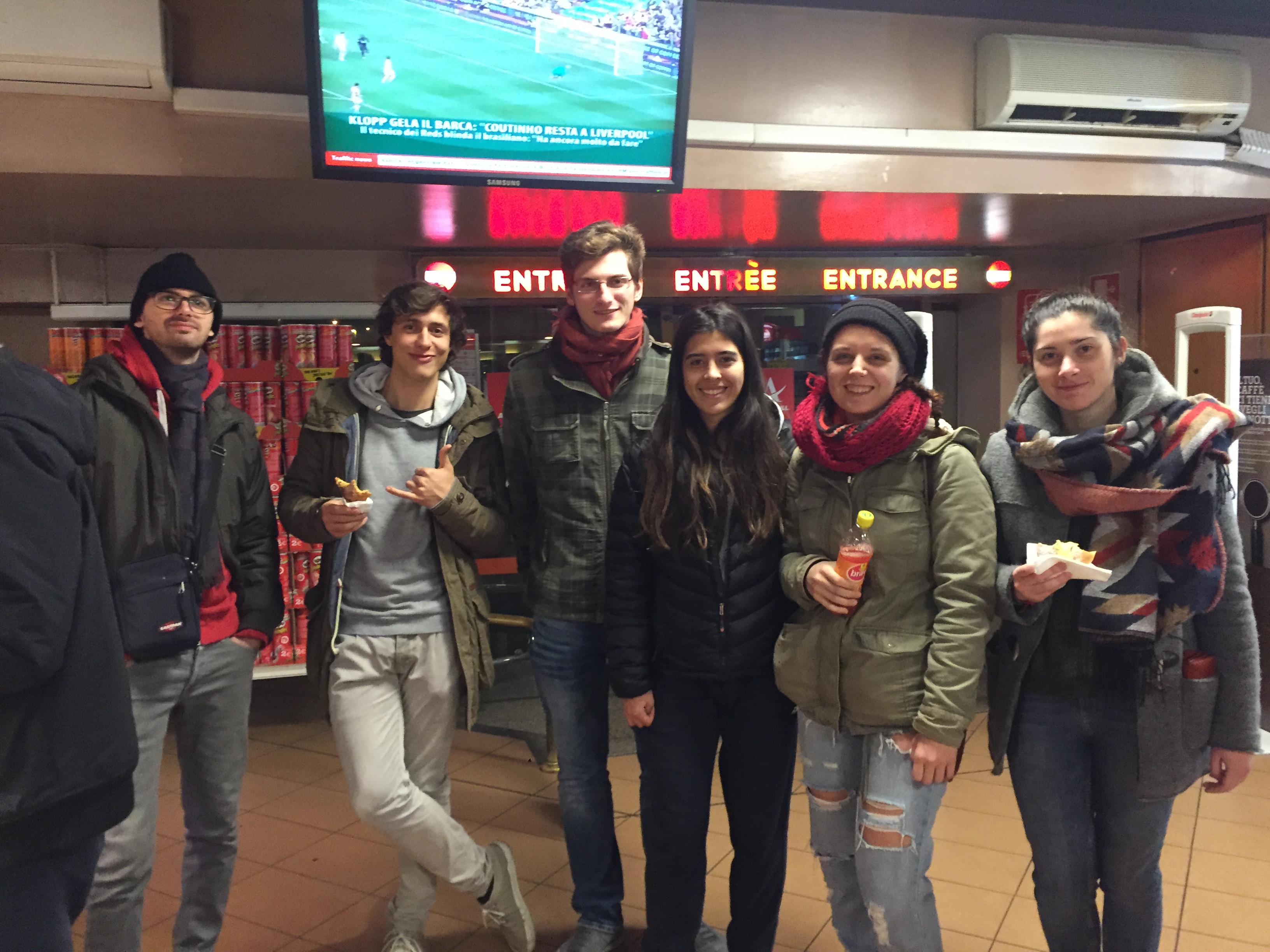 Pausa in autogrill e già gli animi si riprendono! Simone, Nicola, Francesco, Maria Valentina, Mirella e Alba.